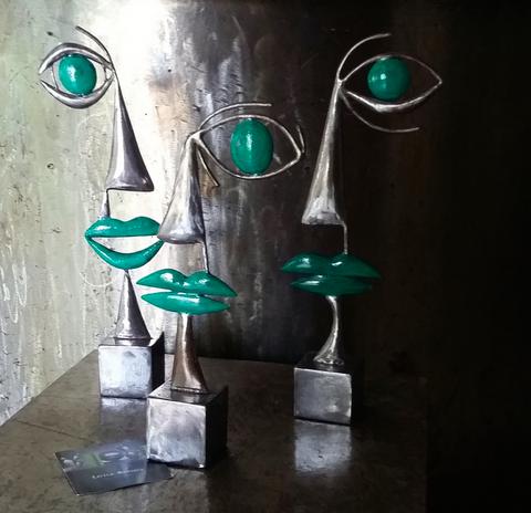 Une création nait de mon regard sur les œuvres de Picasso et de Calder. Emprunter des bouches et des yeux immobiles des toiles de Picasso, les retravailler en métal puis les rendre mobiles en tenant compte des caprices de l'air.