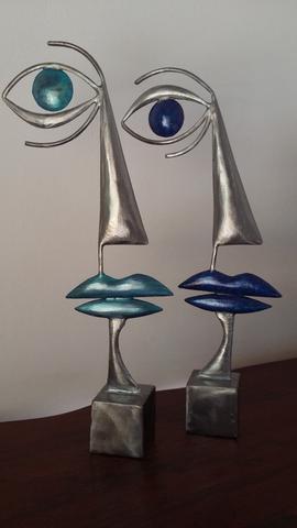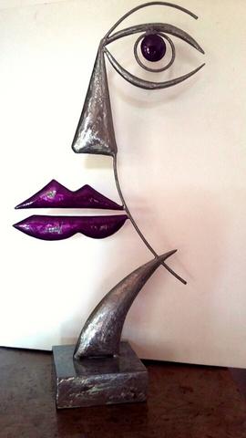 Une création nait de mon regard sur les œuvres de Picasso et de Calder. Emprunter des bouches et des yeux immobiles des toiles de Picasso, les retravailler en métal puis les rendre mobiles en tenant compte des caprices de l'air.